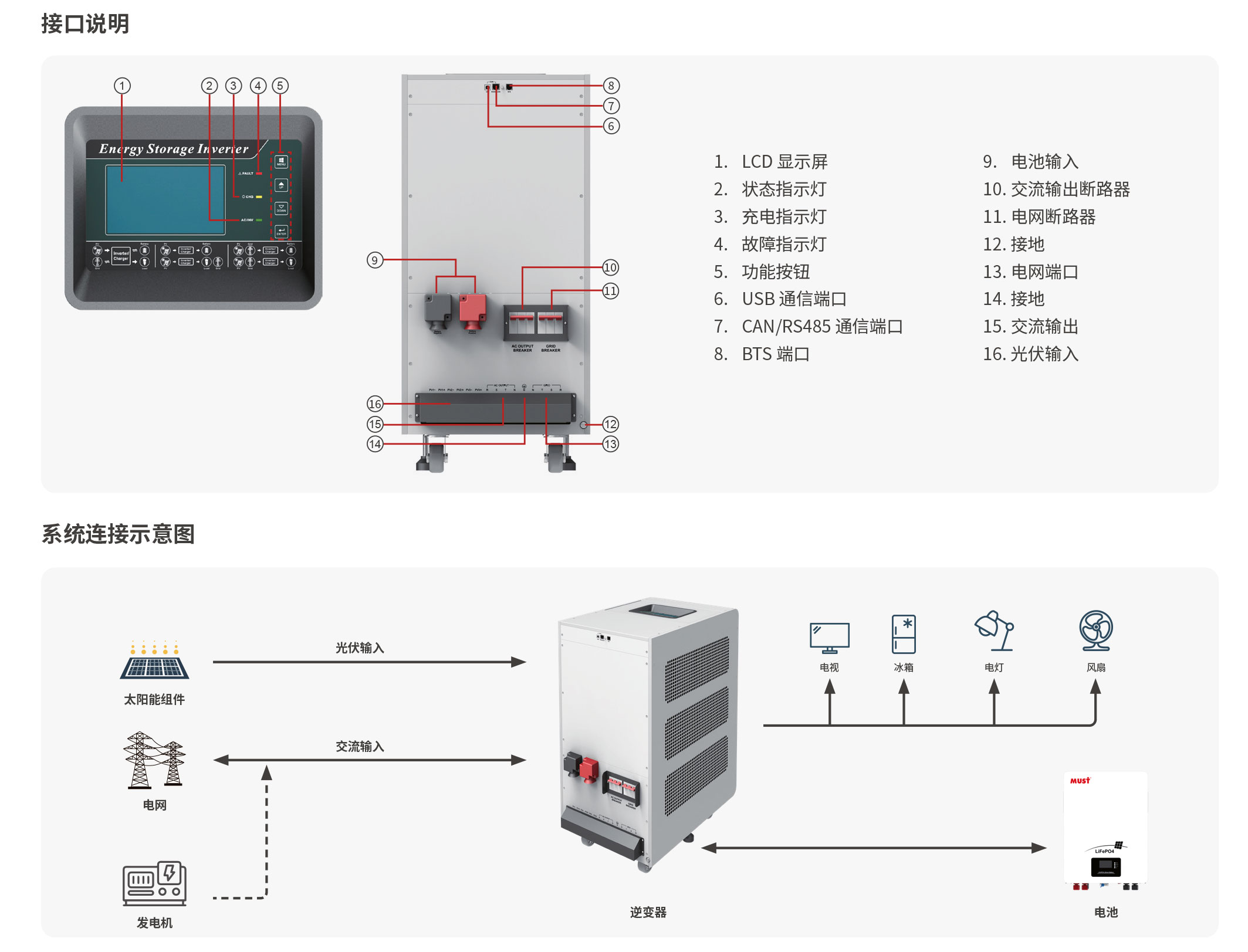 工作方式: 光伏工頻離并網(wǎng)儲能逆變器