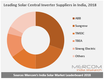 ABB、陽光電源、東芝三菱電機、特變電工和上能電氣是印度市場前五大中央逆變器供應商,占2018年供應的中央逆變器總量的83%。