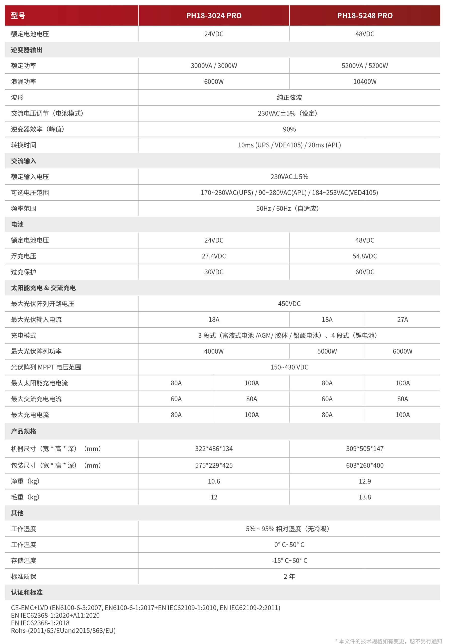 PH1800 PRO 是一款高頻離并網(wǎng)一體的光伏逆變器,內(nèi)部集成 MPPT 控制器、AC 充電器、逆變器等功能模塊于一體,此系列產(chǎn)品無需電池即可運(yùn)行。最大光伏陣列開路電壓可達(dá) 450V,最大功率點(diǎn)電壓為 150~430V,可幫助用戶充分利用太陽(yáng)能。