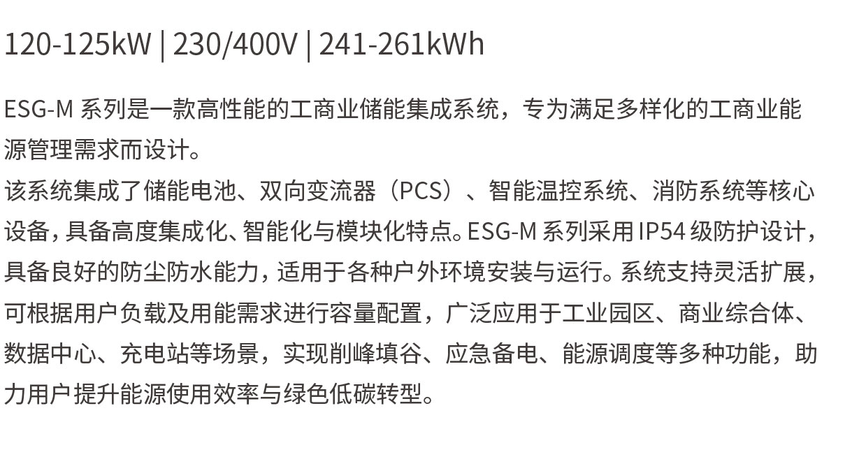 戶外液冷儲(chǔ)能系統(tǒng) ESG-M 系列120-125kW