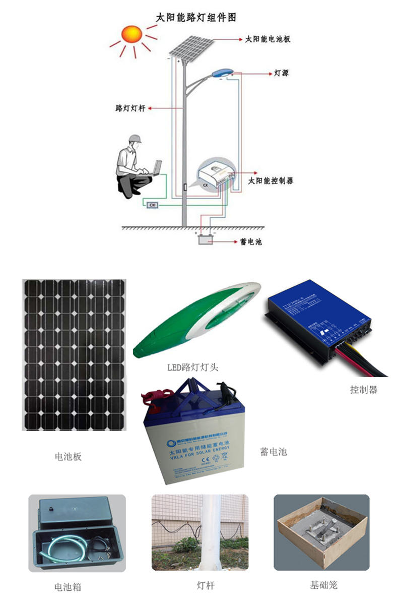 ]]>太陽能路燈系統(tǒng)工作原理簡單,利用光生伏特效應(yīng)原理制成的太陽能電池白天太陽能電池板接收太陽輻射能并轉(zhuǎn)化為電能輸出,經(jīng)過充放電控制器儲存在蓄電池中,夜晚當(dāng)照度逐漸降低至101ux左右、太陽能電池板開路電壓4.5V左右,充放電控制器偵測到這一電壓值后動作,蓄電池對燈頭放電。蓄電池放電8.5小時后,充放電控制器動作,蓄電池放電結(jié)束。充放電控制器的主要作用是保護蓄電池。