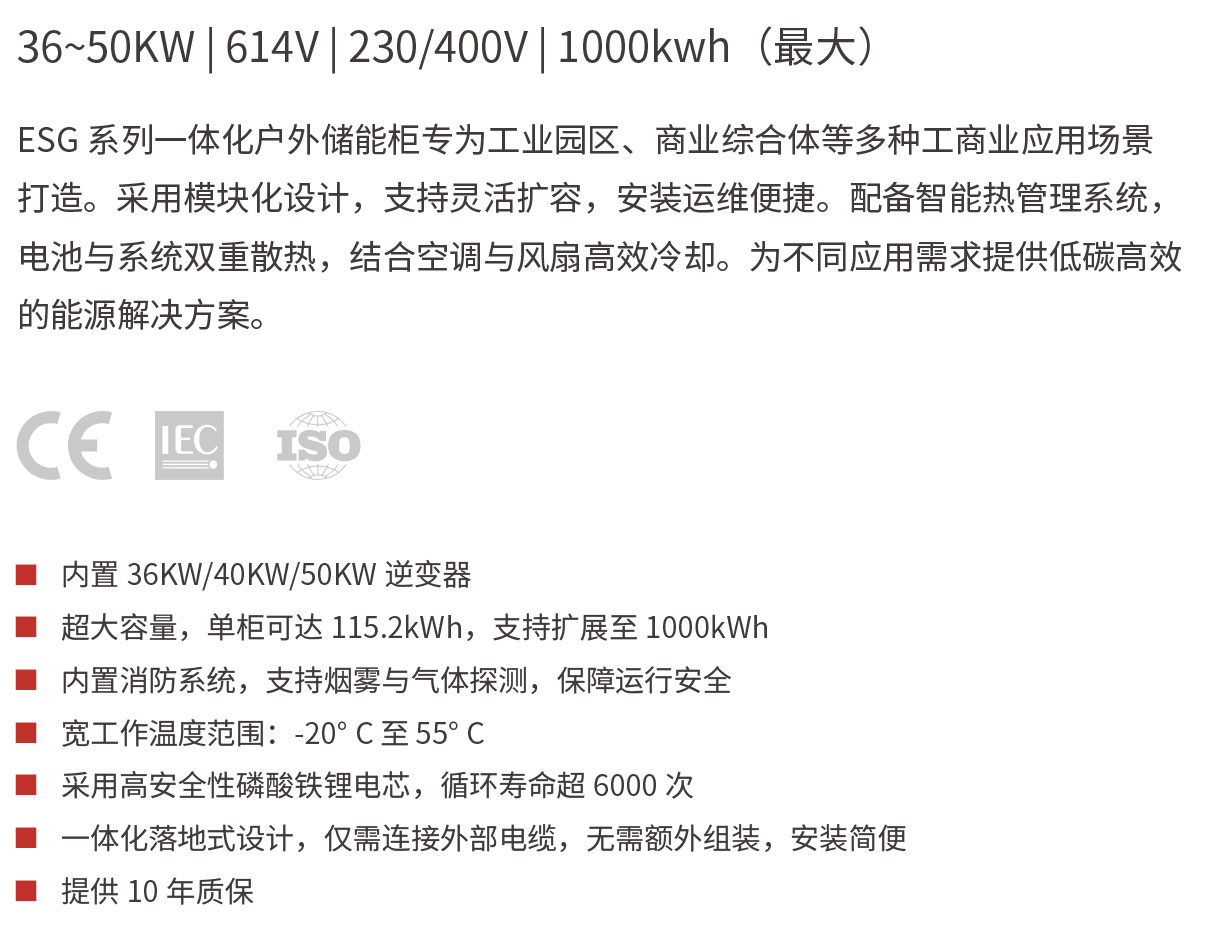 中小型工商儲能系統(tǒng) ESG 系列36~50KW